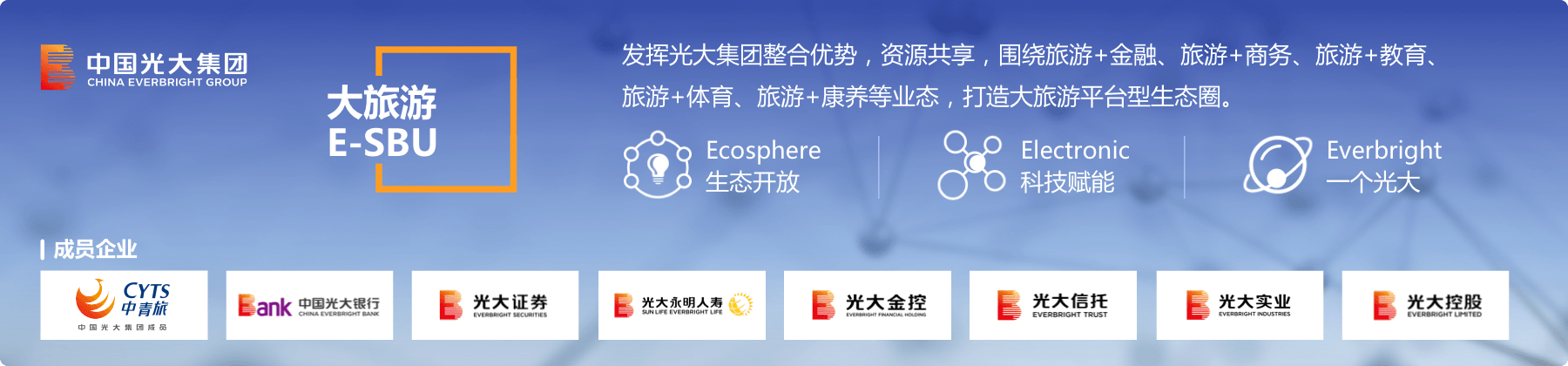 中青旅旗下中青博联专注于为政府、企业、社团等机构客户提供“一站式”整合营销服务,涵盖会议管理、奖励活动、公关传播、活动管理、精准广告、目的地营销、体育营销、博览展览、会议展览及大型活动信息化等多种服务。
